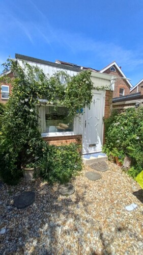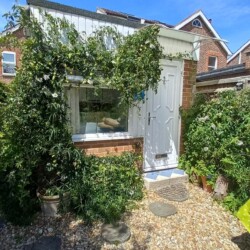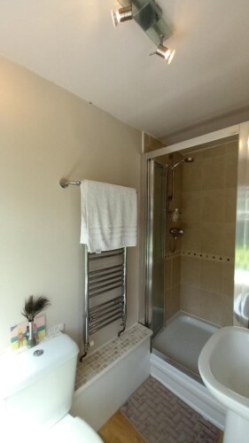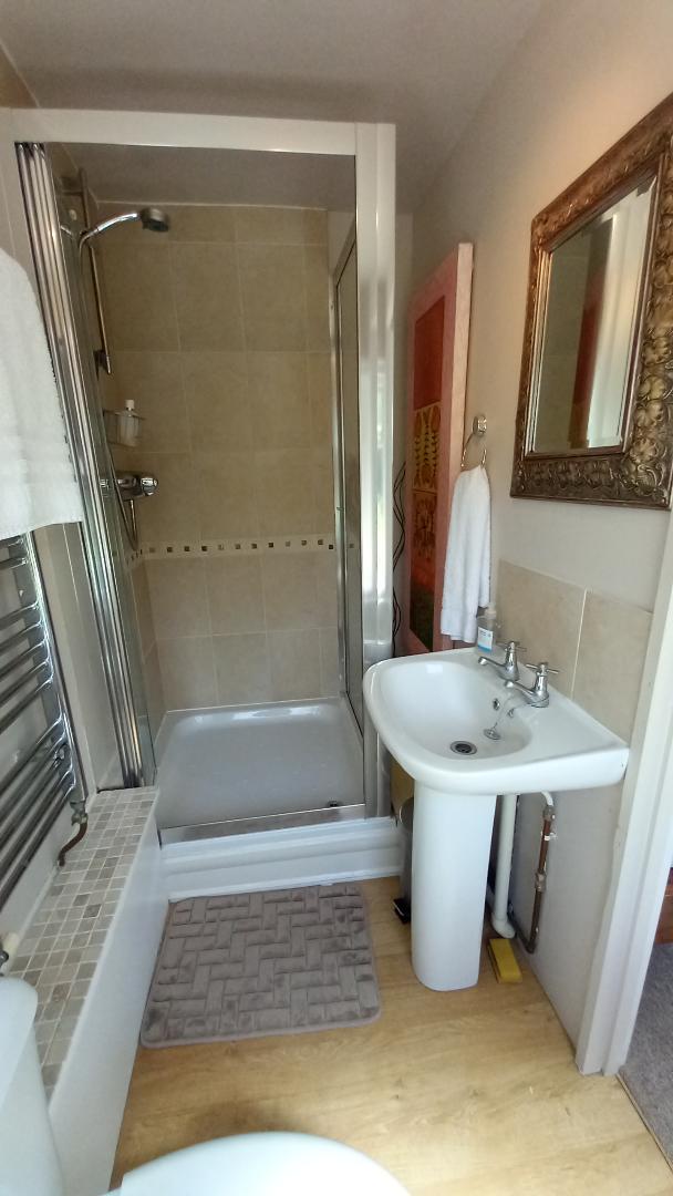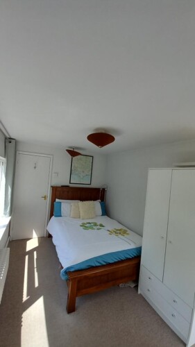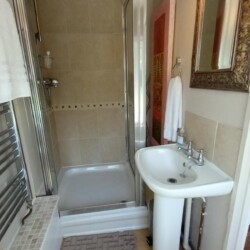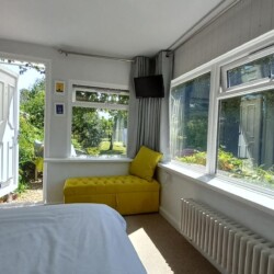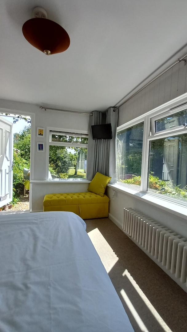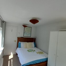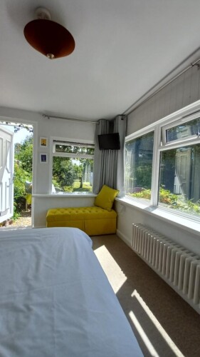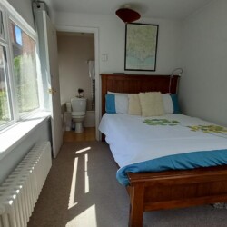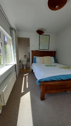 The Garden Room is a light space with a queen size double bed, en suite, and independent access down the side of the main house.