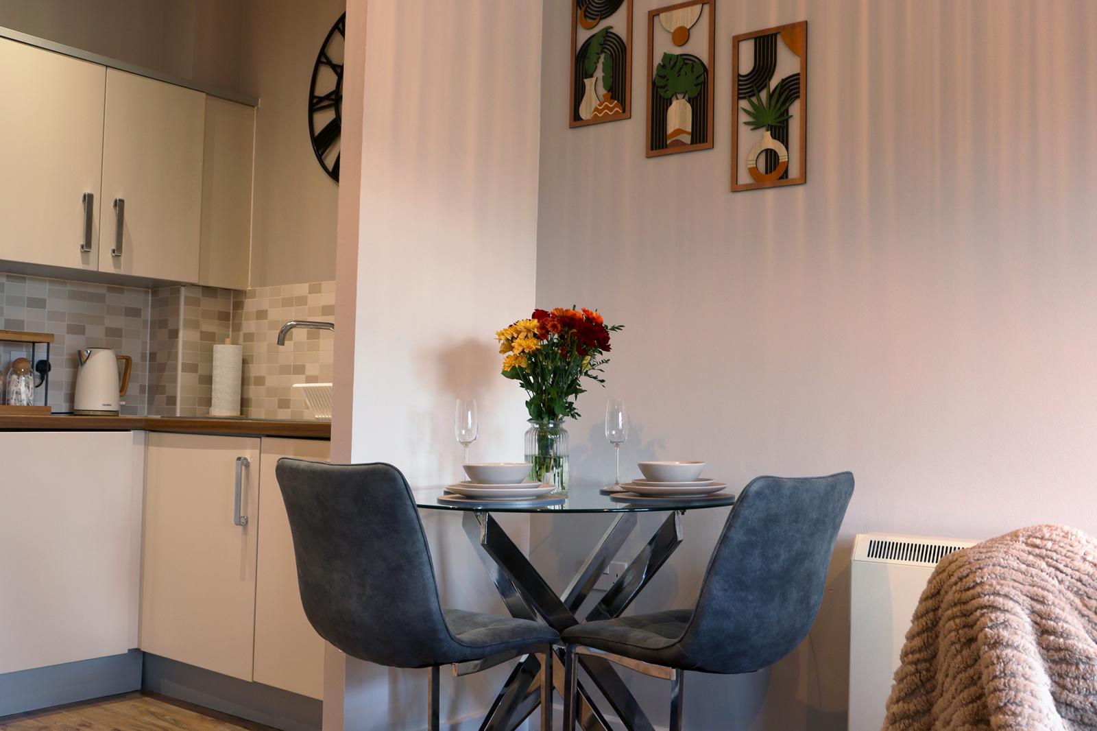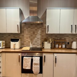 - Fully equipped kitchen with dishwasher, washing machine & air fryer