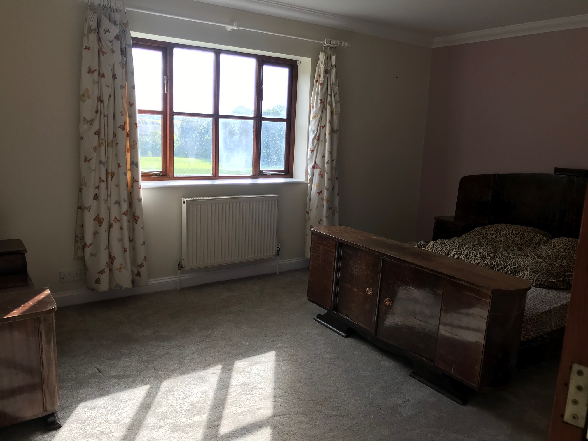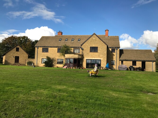 2 x double bed rooms (with new beds and linen), 1 with basin in room, 1 shared bathroom (large high power shower) in a quiet location down a private drive within 11 acres of gardens, orchard and, paddocks and wood. Open plan lounge diner vintage designer furnished and a seperate modern kitchen both with french doors onto the south facing garden/BBQ area. Ample parking (large vans and trailers no problem). Great hi speed wifi and a good mobile signal. Large flat TV with amazon prime TV stick and Netflix subscription. Desks if required.