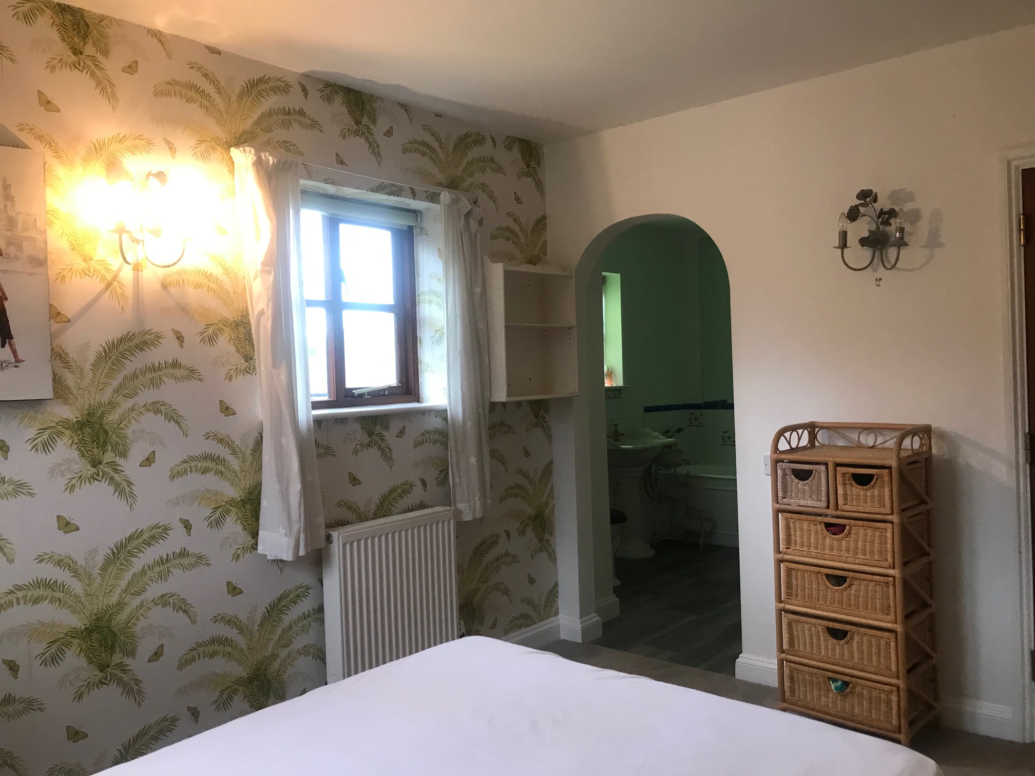 2-3 of the double bedrooms in the main house, 1 is en-suite and the second large bathroom has both a large shower and full size bath (shared if 3rd room rented). In addition extra shower room downstairs. (other rooms not being rented due to lack of bathrooms at present so a huge place for a few people). Use of large living room with woodburner and Flat screen TV and dining room/office area. An extra private office room if required (extra)