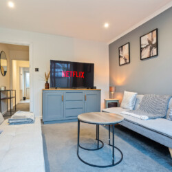Living Space: Our cosy living area blends modern comfort with timeless charm. Unwind with Netflix or Amazon Prime on the Smart TV or enjoy a game night with our complimentary board games. It’s the perfect spot to relax after a day exploring Bath.