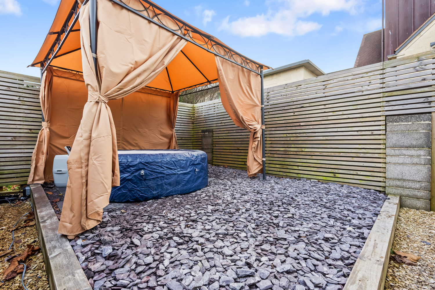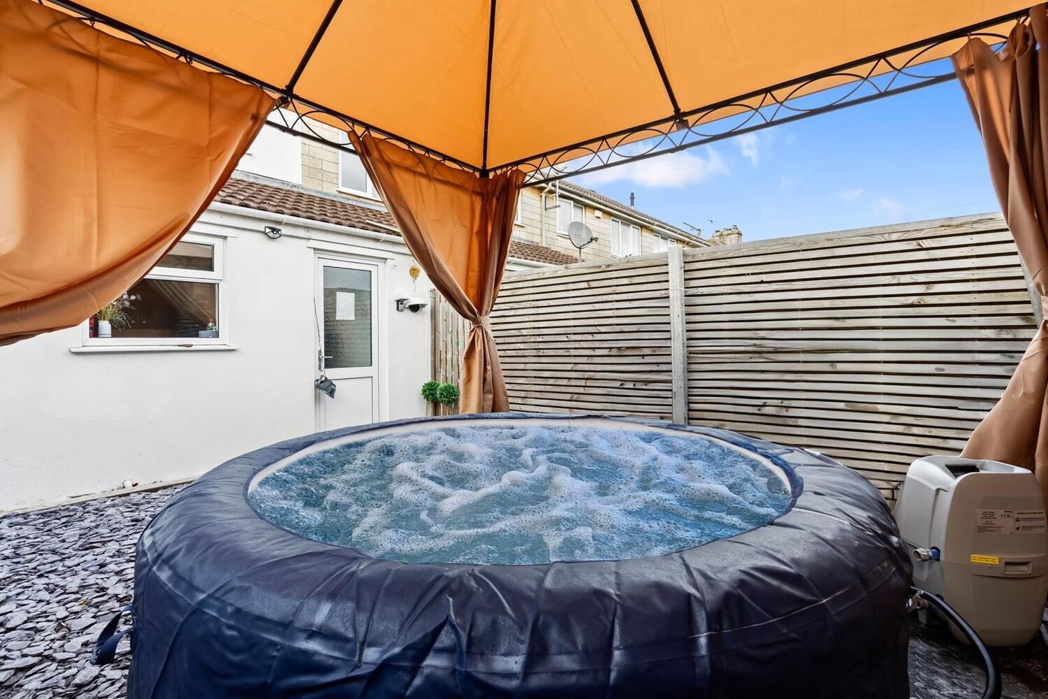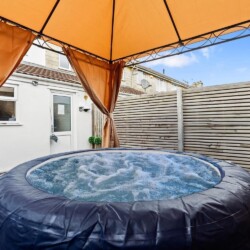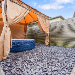 Garden: Relax in our hot tub nestled in a private garden—a perfect way to unwind after a busy day of work or sightseeing. Surround yourself with tranquillity as you soak and de-stress. The outdoor space also features a variety of comfortable garden furniture, ideal for lounging and enjoying the serene atmosphere.