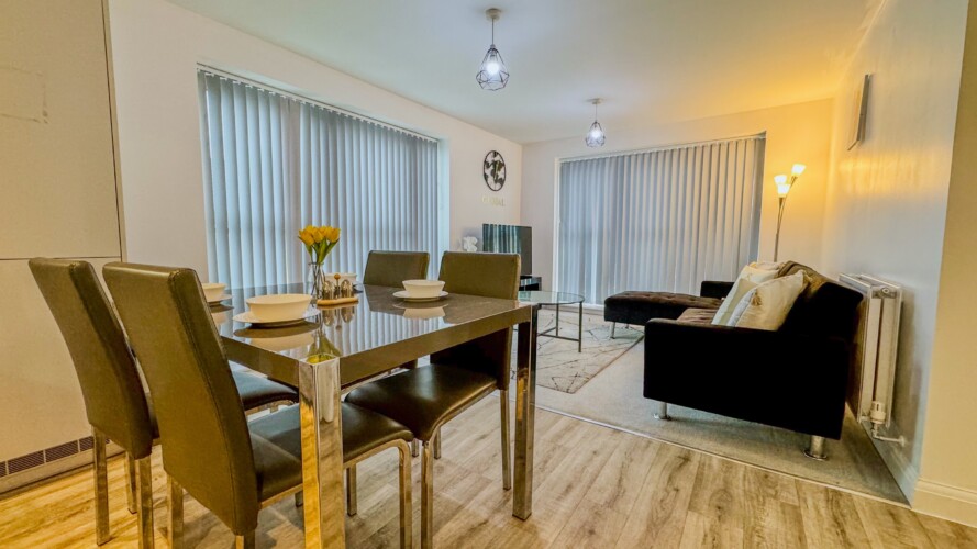 An outstanding opportunity to stay in a brand new 3rd Floor Two Bedroom Two Bathroom Apartment at Kier House in Birmingham’s new and popular complex B5 Central. This apartment is perfect for contractors, business travellers, tourists and families.