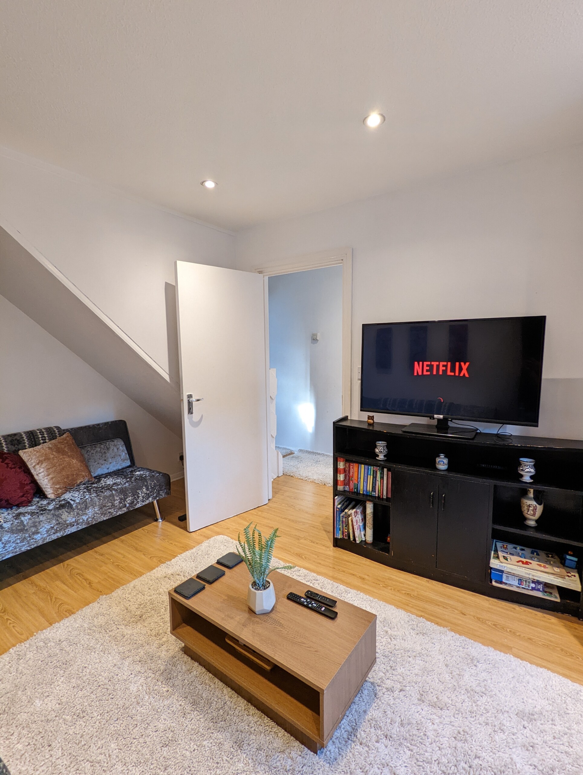 - A communal area with a 43inch smart TV with fire stick and high speed wifi.