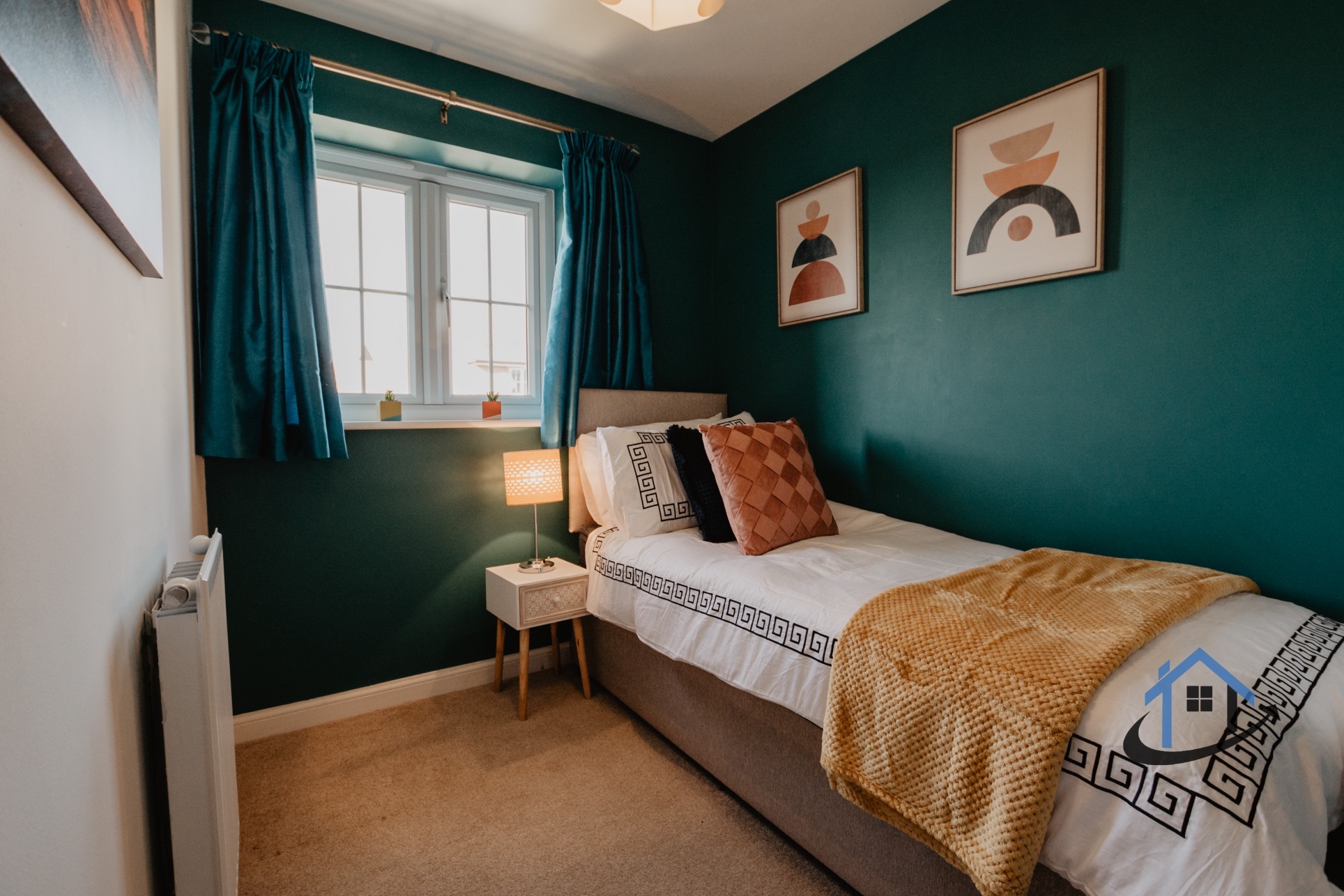 The 3rd bedroom has a single bed, bedside table, night light and single wardrobe.