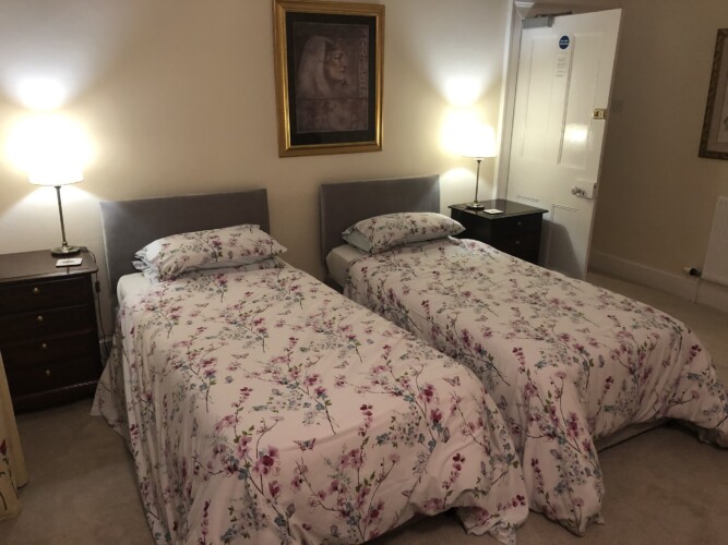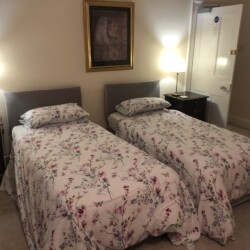 4 double rooms – 3 can have twin beds. 3 bathrooms.