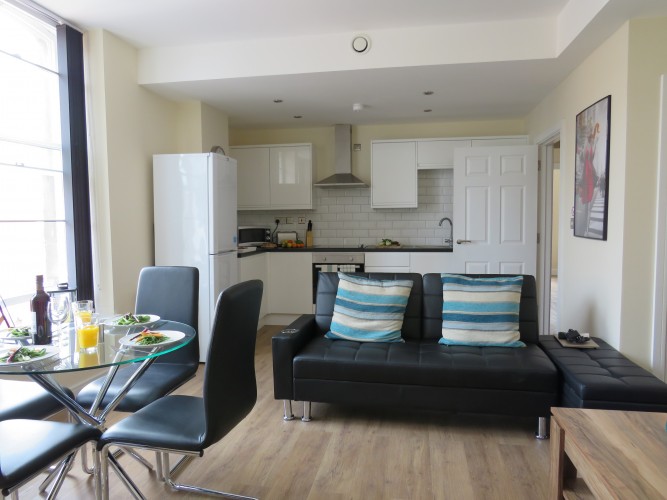 Due to their proximity to local amenities and facilities offered within the apartments, they are ideally suited to contractors on short or long stays. We can accommodate larger groups using zip and link beds and we have free high-speed Wi-Fi for our guests. We offer weekly housekeeping service with fresh linens and bedding and this is included in our price. There is a pay and display car park at the rear of our building. There are lots of shops and restaurants on our doorstep and we have great transport links in and out of the city.