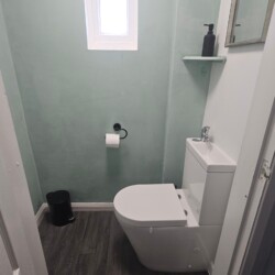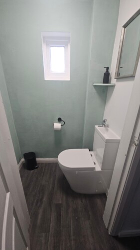The property also features two restrooms – one with a shower and toilet, and the other is a WC.