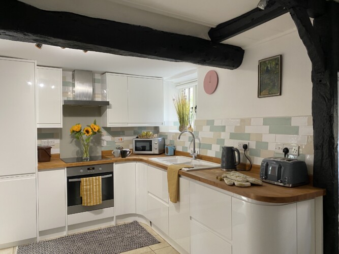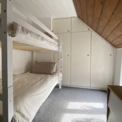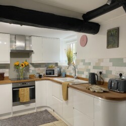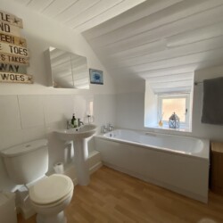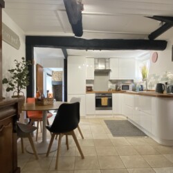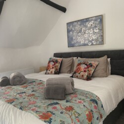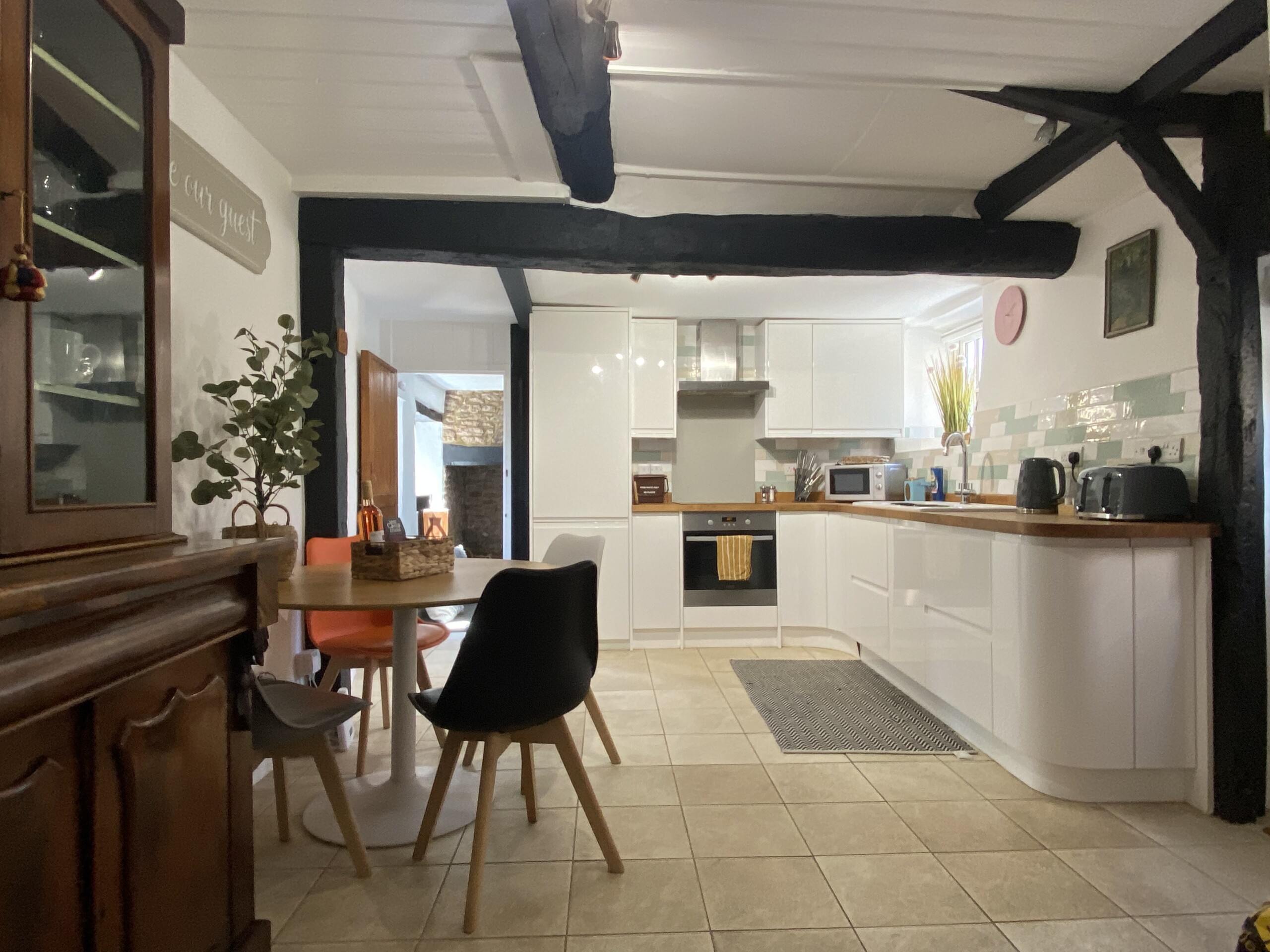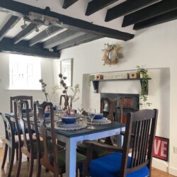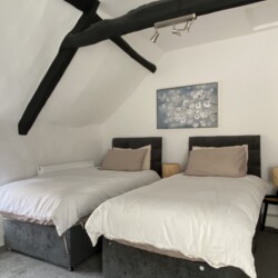 3 bedrooms- 2 which can be king or twin and 1 with bunk beds. Also sofa bed in dining room, 2 bathrooms, 1 parking space, Wi-Fi, extra sofa bed in dining room. Cosy lounge with log burner, modern kitchen, outside courtyard.