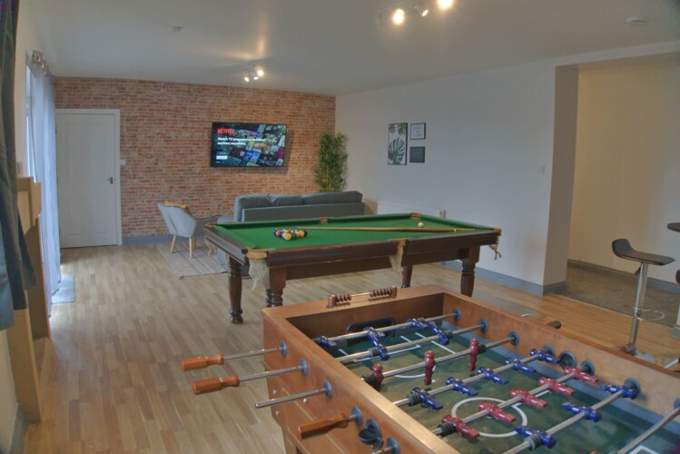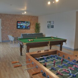 Three open plan lounge is given guests access to Sky Sports, Netflix, Pool and Football Tables boardgames, and video games.