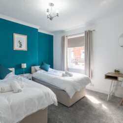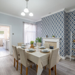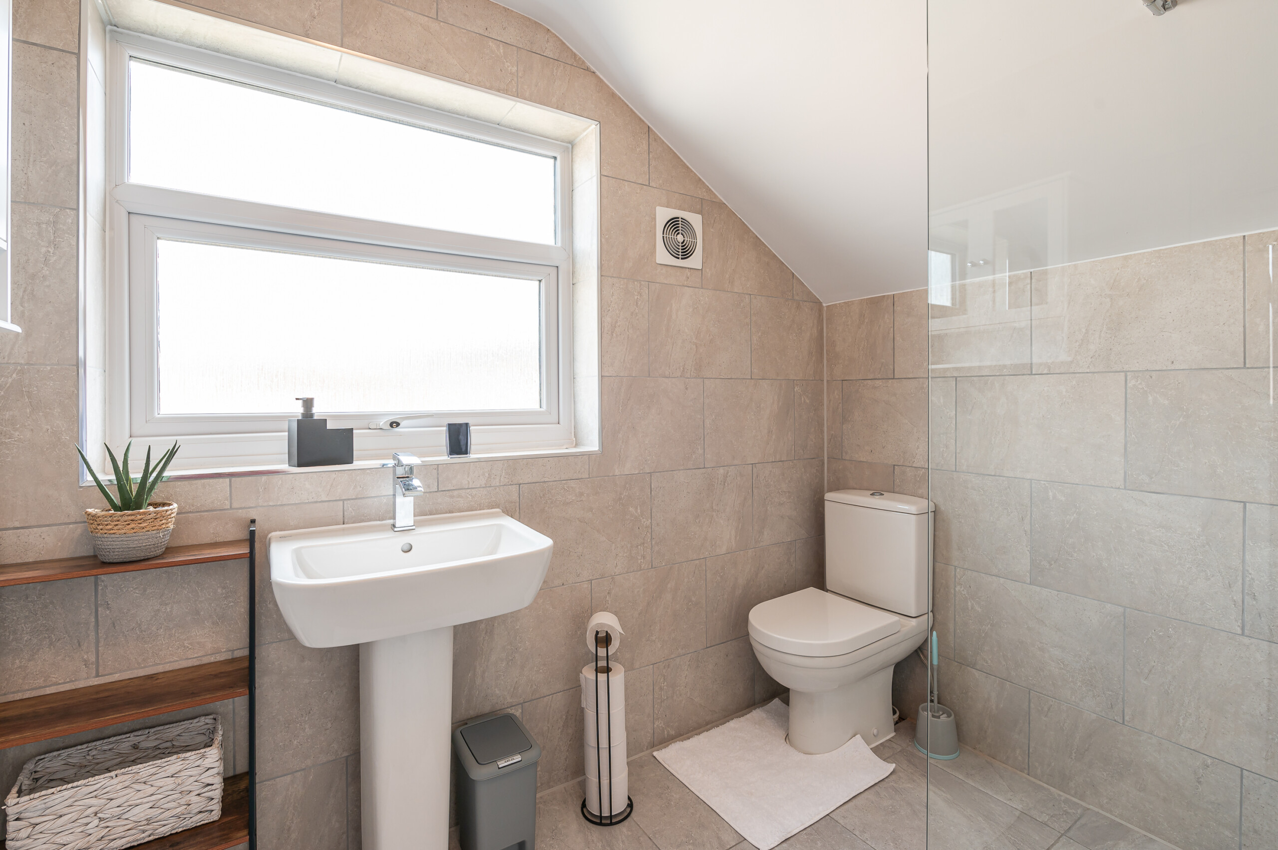 Large spacious property with 4 bedrooms, 1 bathroom, kitchen, dining and living room. 3 bedrooms with double beds and 1 bedroom with 2 singles sleeping 5 guests.