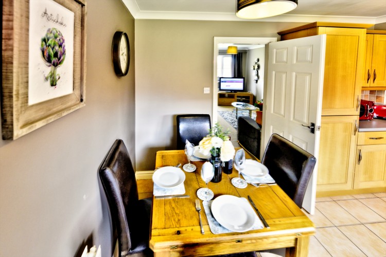 Upstairs hosts two double bedrooms, fitted with twin beds to both and a family bathroom upstairs. There is a lounge and the kitchen/dining area on the ground floor. Fresh bedding and towels are provided for the number of guests booked.
