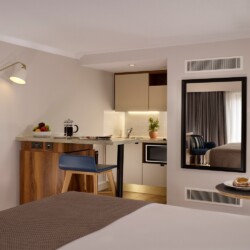 The residence combines serviced apartments and classic bedrooms with air conditioning, en-suite bathrooms, smart TVs with Chromecast to cast your personal content to the TV and seating areas as standard. Each serviced apartment is also fitted with a fully-equipped modern kitchenette. Complimentary weekly housekeeping and wireless Internet connectivity are also available. Other amenities include on-site gym facilities, launderette and on demand housekeeping and dry cleaning services.