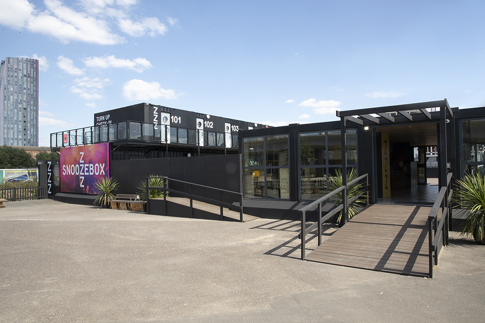Innovative accommodation located within the Queen Elizabeth Olympic Park next to Pudding Mill Lane DLR station, one stop from Stratford with easy access to The City and West End of London. Snoozebox has en-suite rooms and accessible rooms. Enjoy a social lounge with hour beverage facilities, free WiFi, TV’s and rest rooms. Rooms also offer air conditioning/heating, LCD TV, power sockets, safe deposit box, quality linens and toiletries. Large outdoor area with free secure parking.