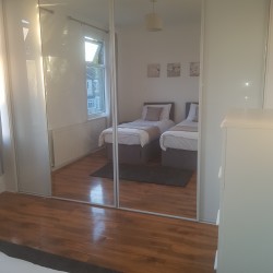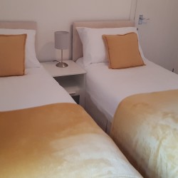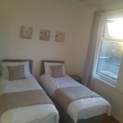 Each room has two single beds. The th bedroom has a double bed. Free breakfast (cereal) also included. Extra folding bed can be provided if required.