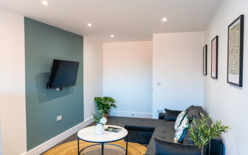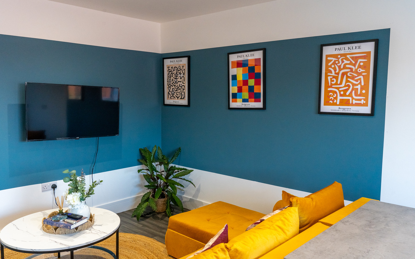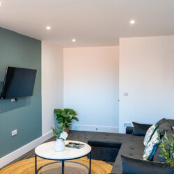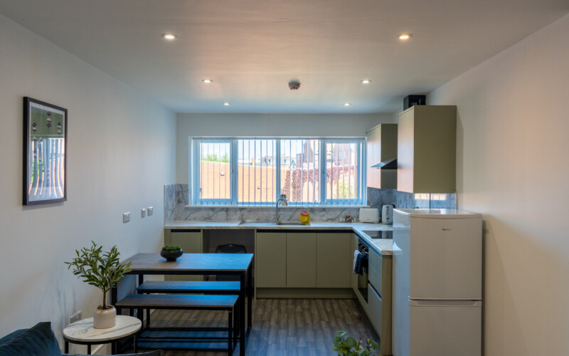 We have 7 flats in the heart of Nottingham, featuring two double beds and a sofa bed for up to six guests. Open-plan kitchen and living area with a large Smart TV, including Netflix and Amazon Video.