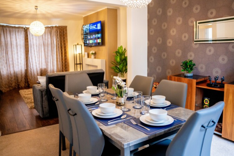 Bright & spacious 4-bedroom home perfect for families or groups! Enjoy a modern living area, fully equipped kitchen, and cozy dining space. Comfy bedrooms and convenient bathrooms make every stay relaxing. With shops, transport links, and parks just steps away, everything you need is close by. Stylish, comfortable, and perfectly located for exploring the city!