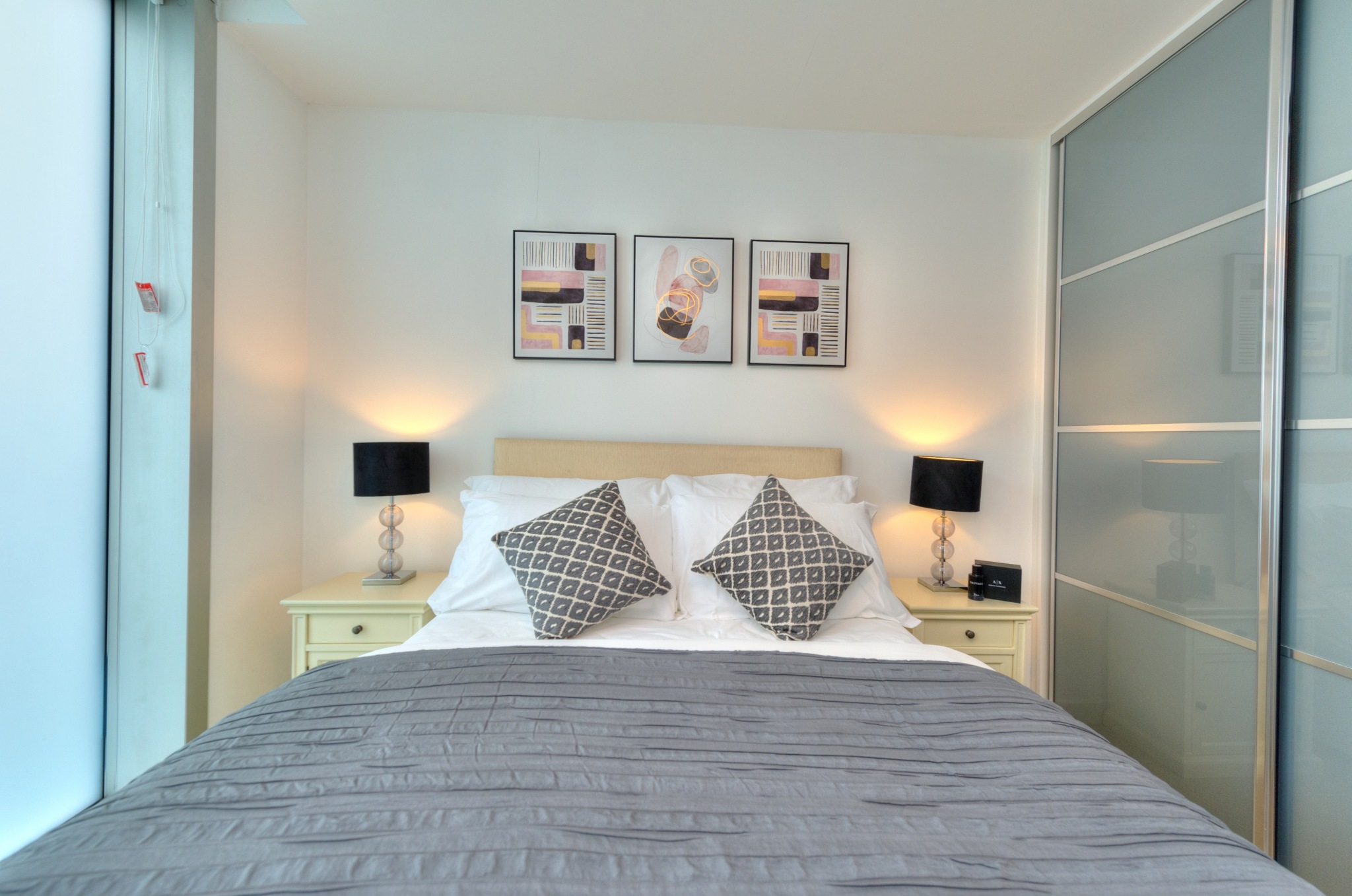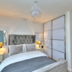 Unique bedroom design with a large fitted wardrobe, double bed with fresh, crisp linen and comfy pillows that will make you want to snooze your alarm in the morning.