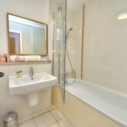 The bathroom is beautifully presented and comprises of a bath with shower head, fluffy towels and of course some complimentary soaps.