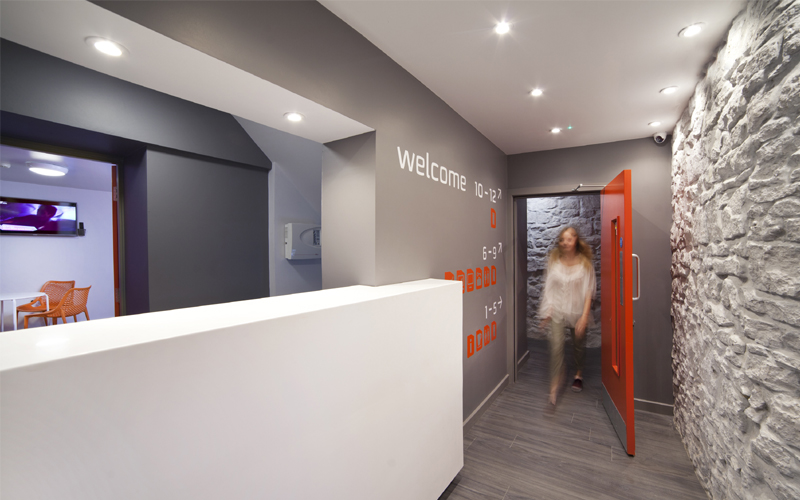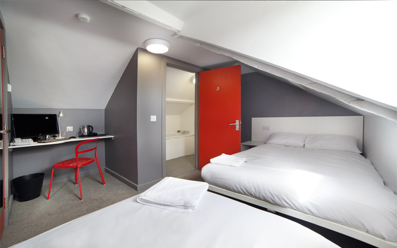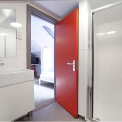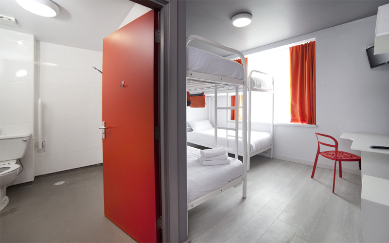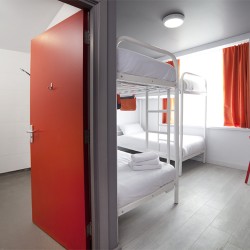 The modern Sleeperdorm offers soundproofed private rooms with views over the city. Bed linen is included. Each has its own en-suite bathroom.