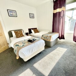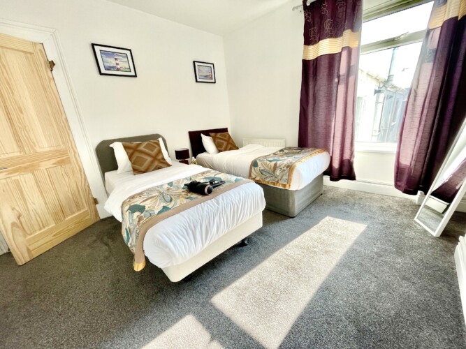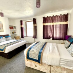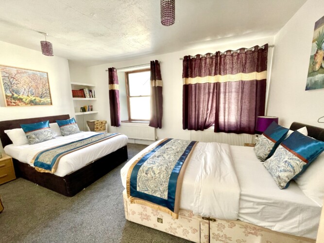 The spacious & airy 3 bedroomed entire house consists of 5 beds (2 double beds & 4 single beds), including the use of high-quality bed linen (washed and pressed) equating to hotel standards and with a more personal touch which is shown in the photos. It also boasts a lovely family-sized bedroom of 17ftx12ft, tastefully decorated, creating a relaxing and welcoming environment.