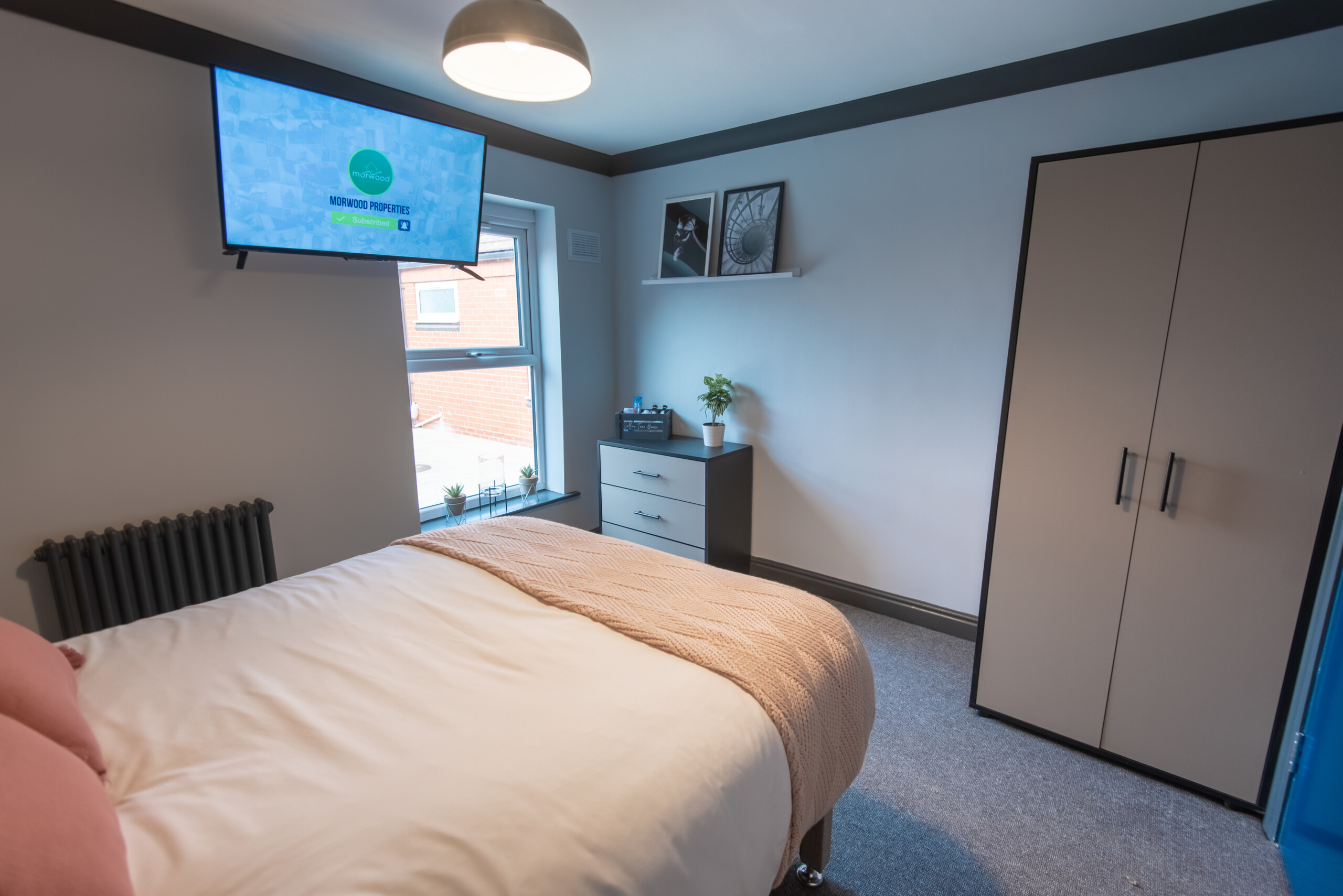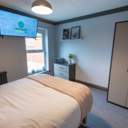 Each bedroom is beautifully set up and contains a comfortable small double bed with orthopedic mattress, wardrobe with hangers, drawers, fresh soft towels, fresh linen, smart TV’s with access to most popular channels incl. Netflix, BBC iPlayer, etc and complimentary super fast wi-fi. Tea and coffee refreshments are available in your room at no extra charge.
