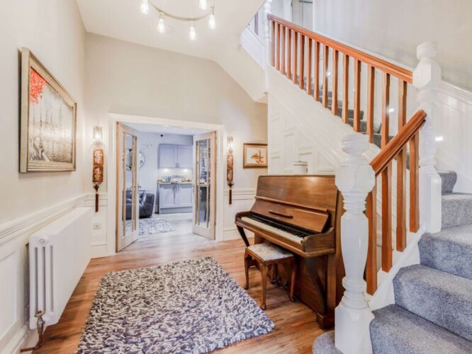 As soon as you enter through the front door you will be immersed in a smart home with built in google assistant, heating controls for each floor, plus speakers throughout the property, which do make this a truly one of a kind house. The lounge has a superb open-fire with the original brick chimney and a Smart TV surrounded by a large sofa and two armchairs. Head on through to the open-plan kitchen/diner which is where you will spend all your days as it has all you need with a Smart TV, dining table and chairs for your feasts of an evening. The kitchen is equipped with Range oven and hob, microwave, fridge/freezer, coffee machine and dishwasher, plus a breakfast bar. There is also a utility room leading off this with a washer/dryer. In addition, there is a ground floor WC before the stairs. Heading up to the first floor there are three double bedrooms. One of the rooms has an en-suite shower and WC, also with controls to choose the temperature and music. A main shower room compliments this floor with shower and WC, again with the controls to choose the temperature and music. Leading up to the second floor we have a twin bedroom, two bunk bedrooms and bathroom with bath, shower and WC. All the bedrooms have Smart TV’s and the bunk rooms have games consoles.