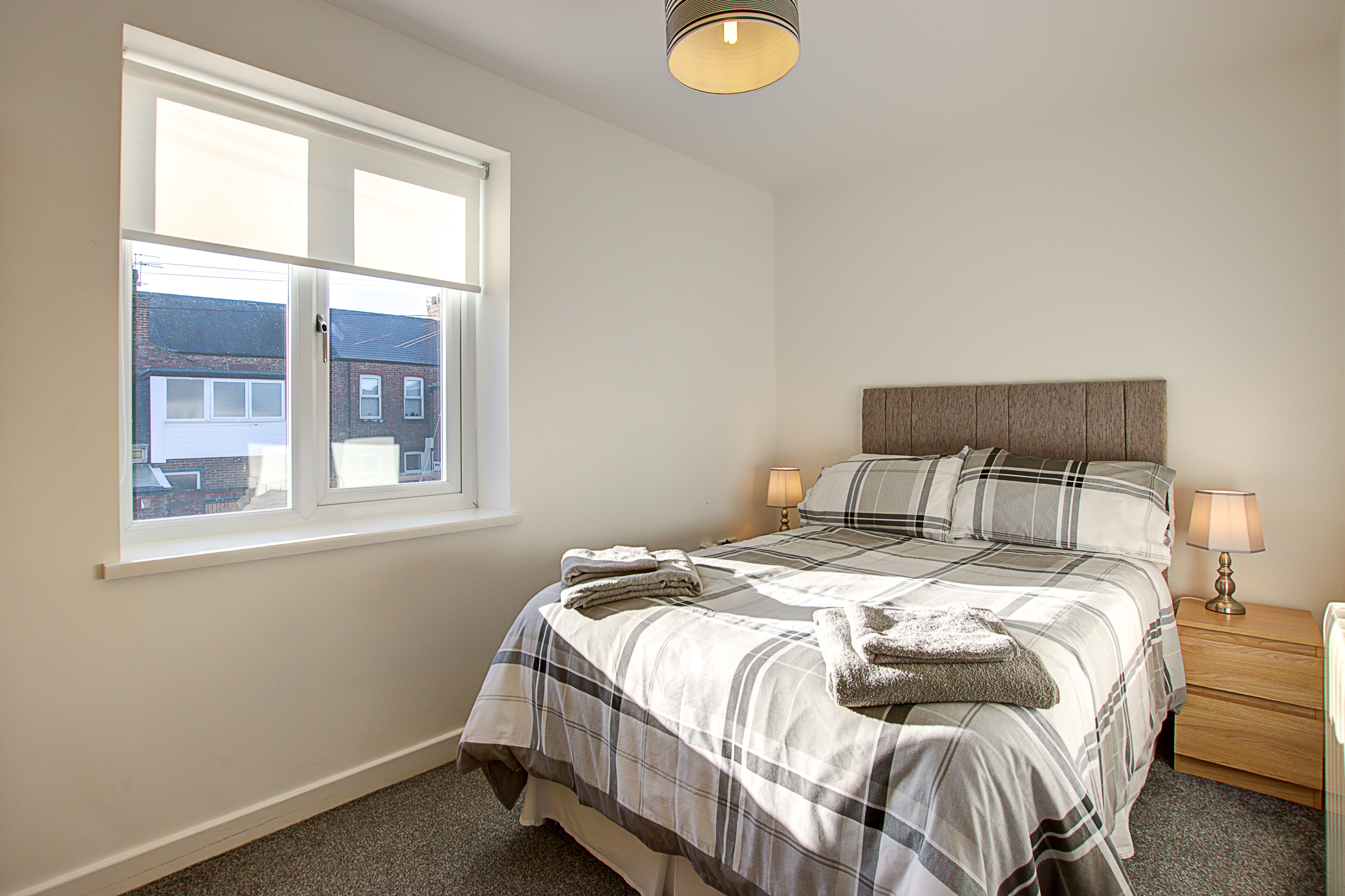 2 double bedroom apartments in purpose built block in Fulwell, Sunderland, SR6, each with open plan living/dining room, fitted kitchen with appliances and washer dryer. Bathroom with rainforest shower above the bath. Bedroom 1 – double or king size bed. Bedroom 2 – 4ft double bed.