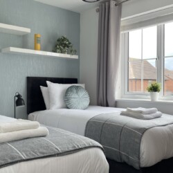 Located within the heart of the National Forest the accommodation is 0.8 miles from the centre of Swadlincote, 3.9 miles from Ashby-de-la-Zouch and 7.8 miles from Burton-on-Trent. A dry ski slope and cycling trails as well as endless walks can be enjoyed within close proximity. It is well located to several city centres including Leicester which is 18.6 miles, Birmingham is 24.2 miles, whilst Nottingham is 21.1 miles away. The nearest airport is East Midlands Airport is 9.9 miles from the accommodation.