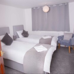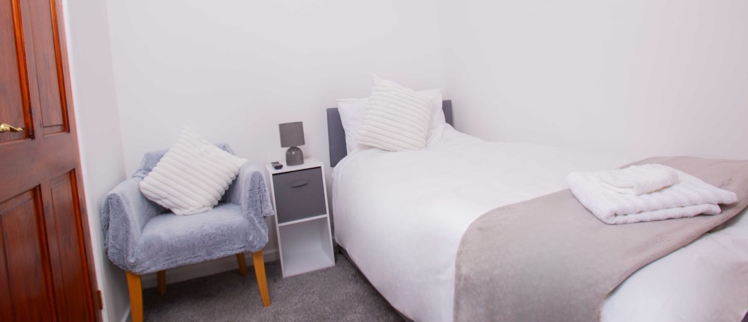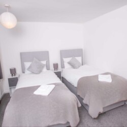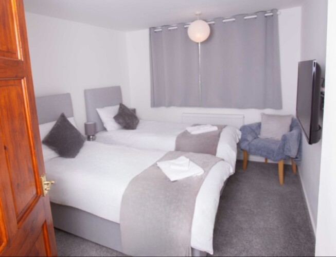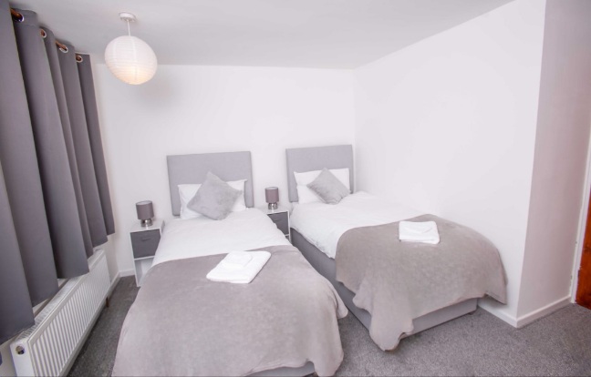 3bed terraced house, sleeps 6 (bedroom one superking bed zip link so we can separate to for contractors, bedroom two kingsize bed again zip link so again we can seperate for contractors, bedroom three single bed and finally large sofa bed for the 6th person).