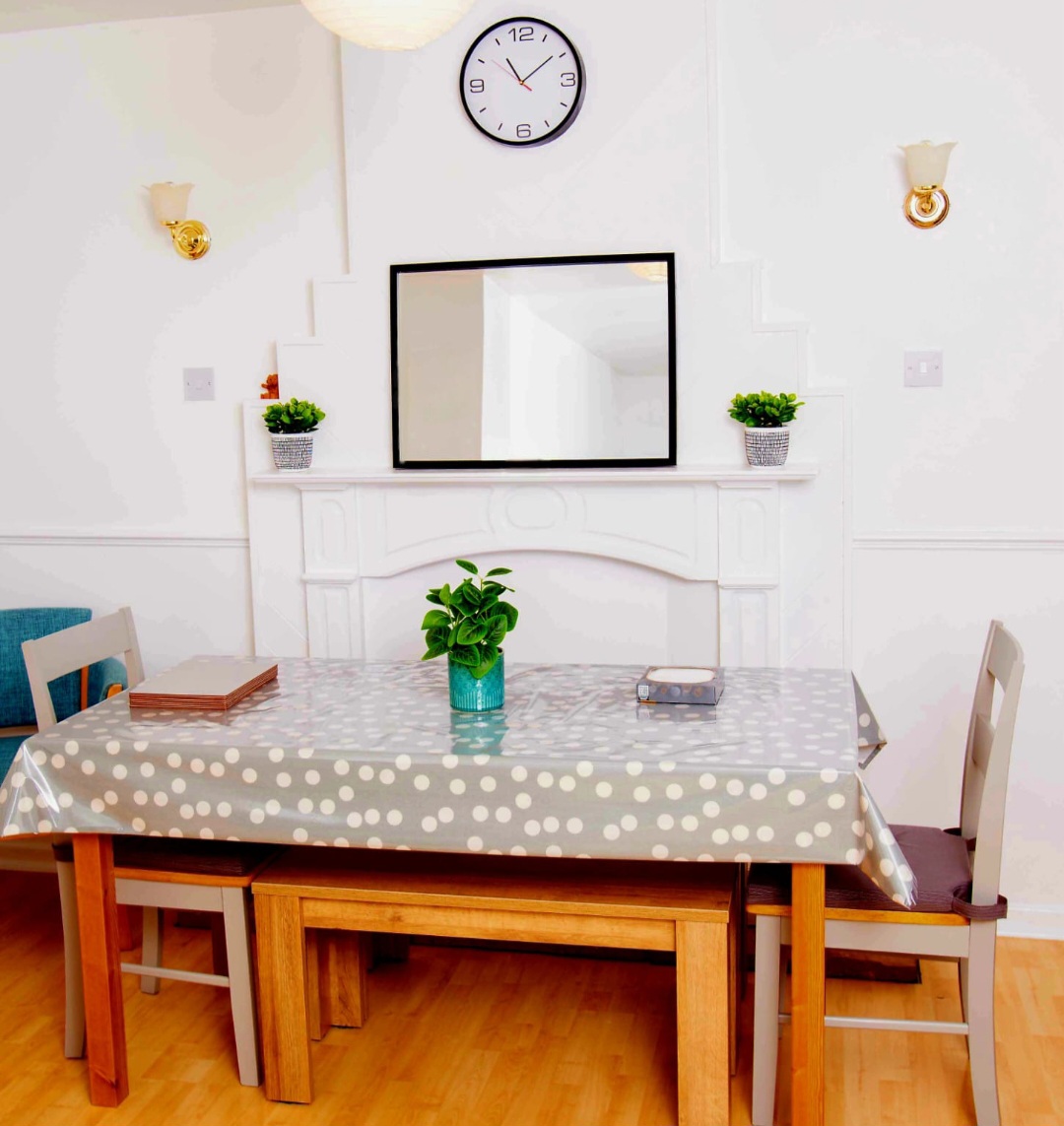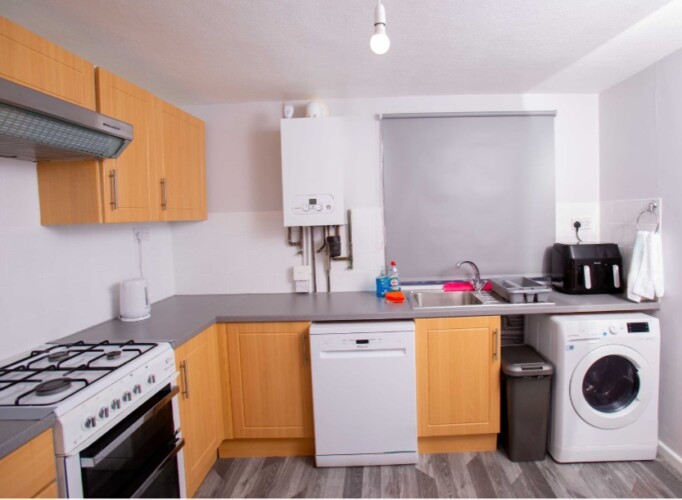 Microwave, double draw air fryer, fridge freezer, dishwasher, tumble dryer. Free street parking (one day in future we will drop kerb). EICR certificate and gas safety certificate.