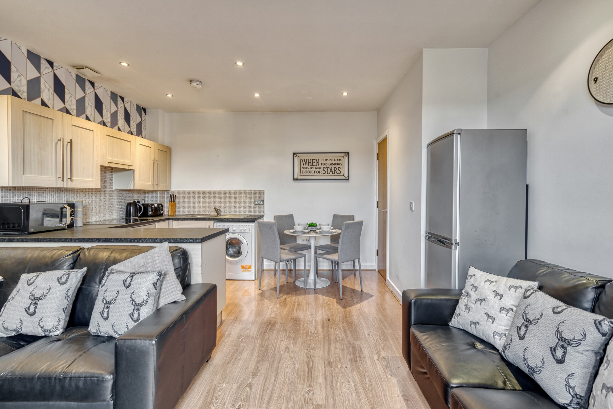 Comprising of a double bed in one bedroom and 2 singles in the second bedroom, the apartment is ideal for professionals or families looking to stay in or near Wigan. The apartment has lift access for ease and comfort and is furnished and equipped to a good standard to make your stay as comfortable as possible.