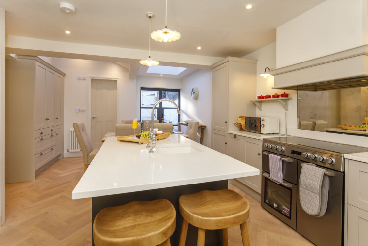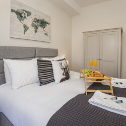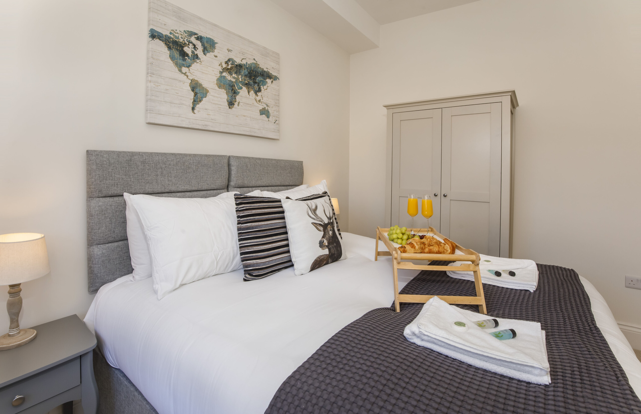 The fully equipped kitchen is designed with long stays in mind, featuring a full range of modern appliances, including an oven, microwave, fridge/freezer, washing machine, and dishwasher. This allows guests to prepare home-cooked meals, reducing the need for dining out and ensuring a cost-effective stay. The kitchen also offers plenty of storage space for groceries, making it easy to settle in for an extended period.