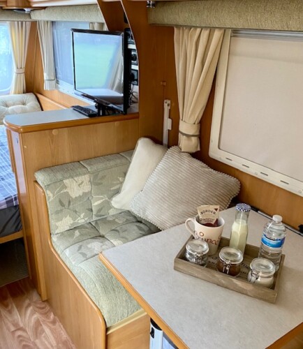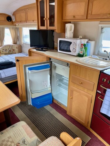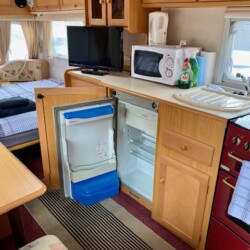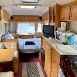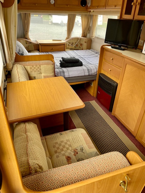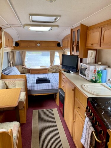 Modern, fully equipped touring caravans providing everything a guest would need including: large double bed, bedding and towels provided |shower | toilet | oven, hob, microwave, toaster, fridge, freezer, all cooking utensils inc. pots, pans etc. | Freeview TV/DVD | Free parking | Fully serviced (waste removal) | Mains water and electricity etc.