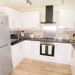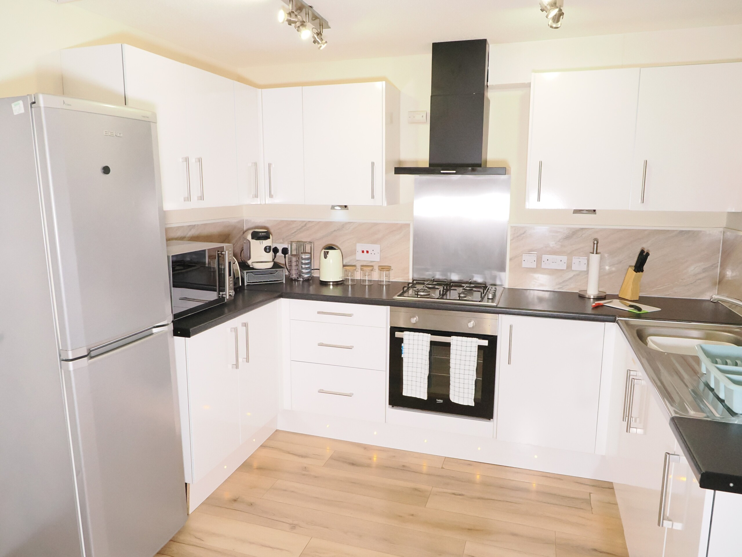 Modern Kitchen with separate Sitting Area, 2 Large Bathrooms, one with Shower / bath and the other with shower.