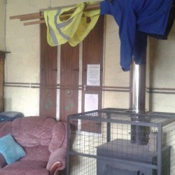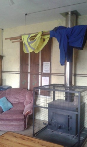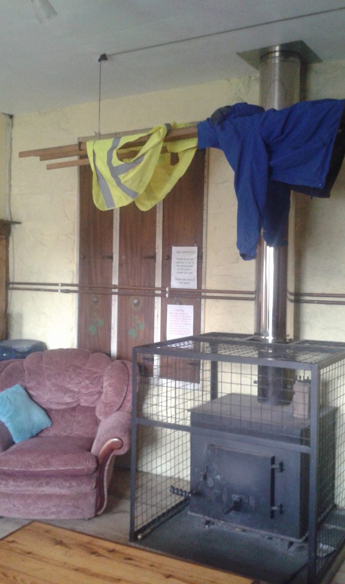 Massive woodburning stove which can burn through the night making the building cosy in even the coldest weather which has a very effective clothes drying rack over the top.