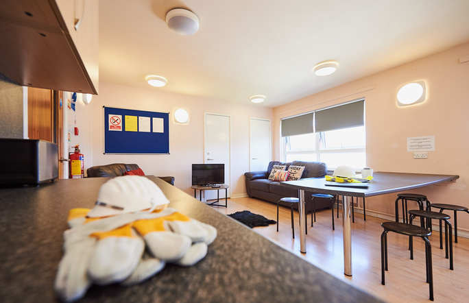 All of our apartments have large and modern shared living rooms, kitchens and dining areas, plus shared bathroom facilities and Super-fast wifi. Each bedroom contains chest of drawers, wardrobe, desk and desk chair to give your team space to work and relax. Every apartment has plenty of space to store boots, overalls and work gear.