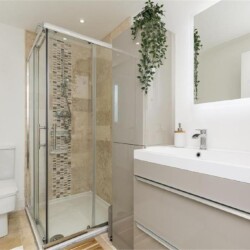 The ensuite is equipped with a powerful gas shower.