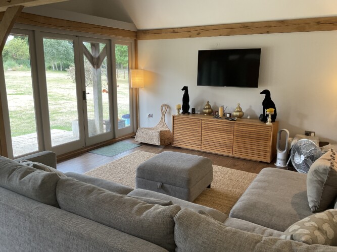 The Barn is a one bedroomed self contained barn with an upstairs bedroom and an open plan kitchen/diner/living room. It is on an equestrian farm and is a peaceful and idyllic location. The village has a pub serving food and is 5 minutes from the A3.