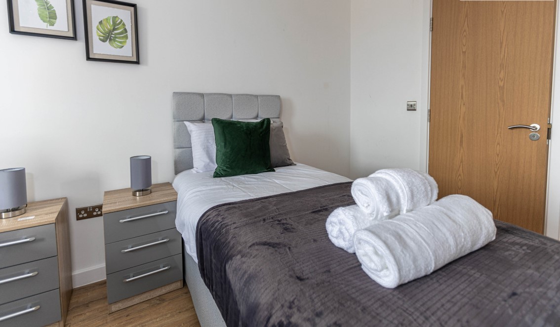 Fully furnished apartment complete with home-like facilities. Access to the complete package, parking facilities, fully equipped kitchen, living area, bathroom facilities, WiFi, TV, washing machine, slimline dishwasher, linen, towels and toiletries come as standard. Providing a service to meet you and your budget.